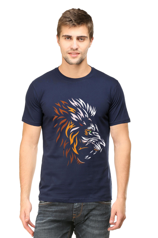 Male Classic Crew T-Shirt | Black & Navy Blue Lion