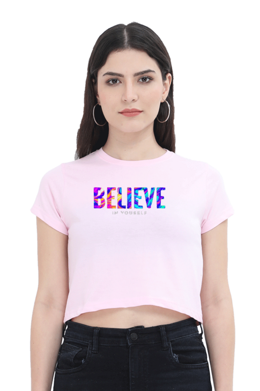 BELIEVE Female Crop Top by YOK – Premium 100% Cotton Unisex Tee